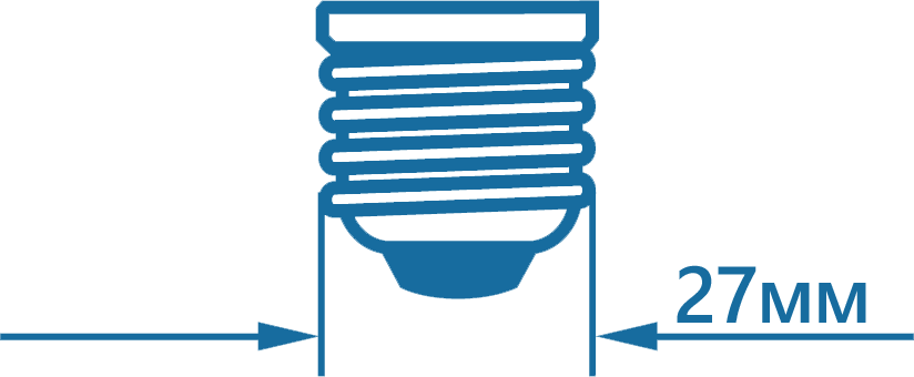 E27 — самый популярный тип цоколя, придуманный Томасом Эдиссоном. Диаметр резьбовой части 27 мм. Широко используется в производстве ламп накаливания, светодиодных, галогенных и др.