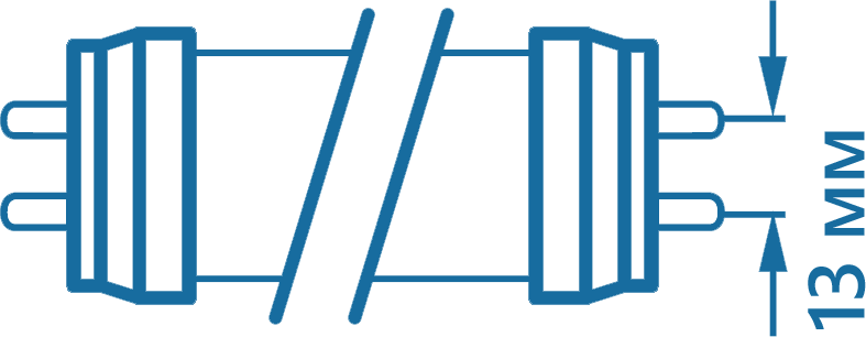 G13 — штырьковый цоколь. Расстояние между штырьками составляет 13 мм. Лампы с данным цоколем устанавливаются в светильники типа Армстронг, ЛПО, ЛВО, ЛСП и прочих.