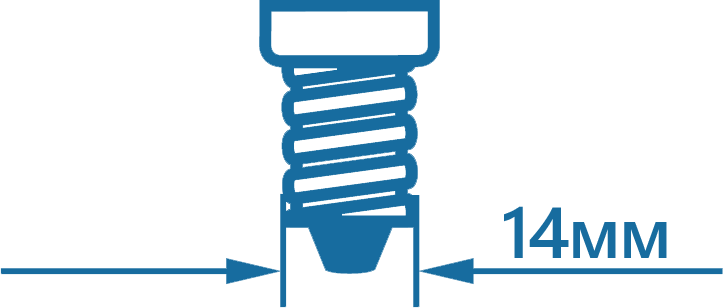 Е14 — второй по популярности тип цоколя в быту. Название получил из-за диаметра резьбовой части 14 мм. Буква «E» обозначает винтовой тип (винт Эдисона). Такой цоколь часто встречается среди ламп накаливания, энергосберегающих и светодиодных ламп. Их отличает большое разнообразие форм: шар, грушевидная, свеча, полусфера, зеркальная и др. Лампы с цоколем Е14 используются как источники общего или локального освещения, а так же выполняют роль подсветки в бытовых приборах. |