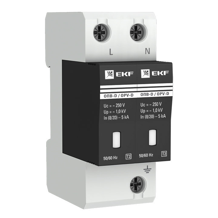 Ограничитель импульсных напряжений ОПВ-D/2P PROxima, 2 полюса, Класс 2, 5 кА, 10 кА