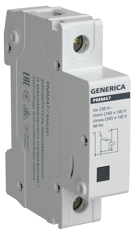 • Реле напряжения с контролем тока 1P+N KARAT, 1НО, 50А, 220В AC