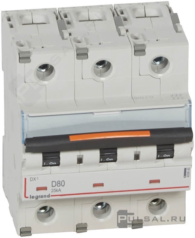 Автоматический выключатель DX³, 3 полюса, 80А, D, 25 кА