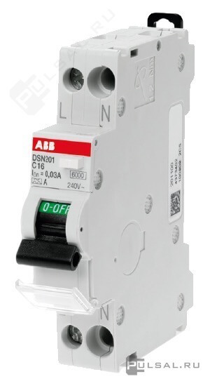 Автоматический выключатель дифференциального тока DSN201 C6 AC30 DSN201, 1+N полюс, 6А, C, 6 кА, тип - AC,