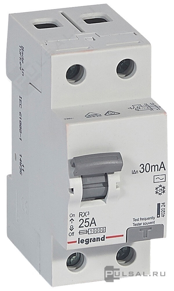 • Выключатель дифференциального тока (УЗО) RX³, 2 полюса, 25А, тип - AC, 100 мА