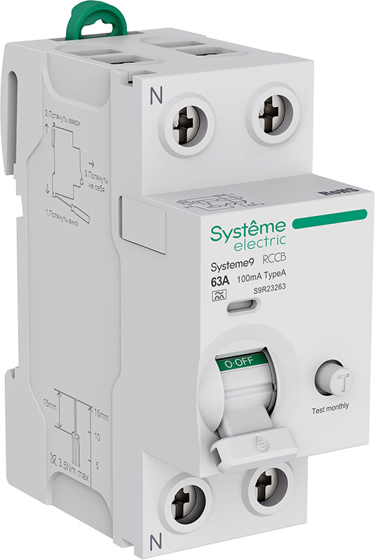 Выключатель дифференциального тока (УЗО) Systeme9 Systeme9, 2 полюса, 63А, тип - A, 100 мА