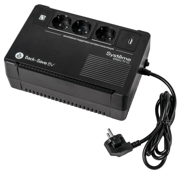 • Источник бесперебойного питания 600 ВА, Back-Save BV (BVSE), мощность -  600 ВА/ 360 Вт, цвет -  черный