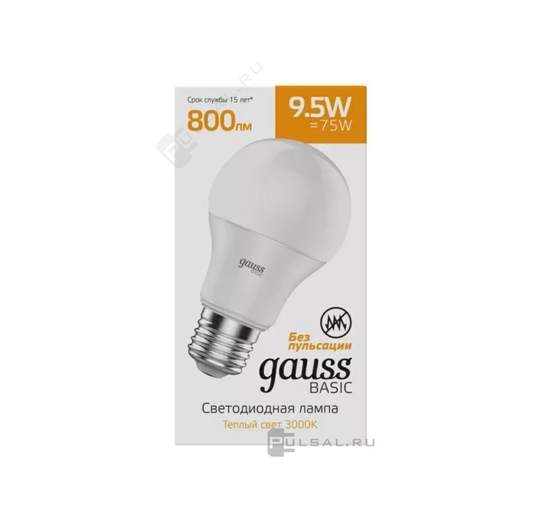 Black, цоколь - E27, мощность - 9.5Вт, световой поток - 890Лм, цветовая температура - 3000К, не диммируется, 103102110, Gauss