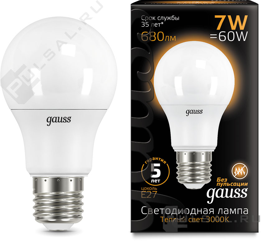 Black, цоколь - E27, мощность - 9.5Вт, световой поток - 890Лм, цветовая температура - 3000К, не диммируется, 103102110, Gauss