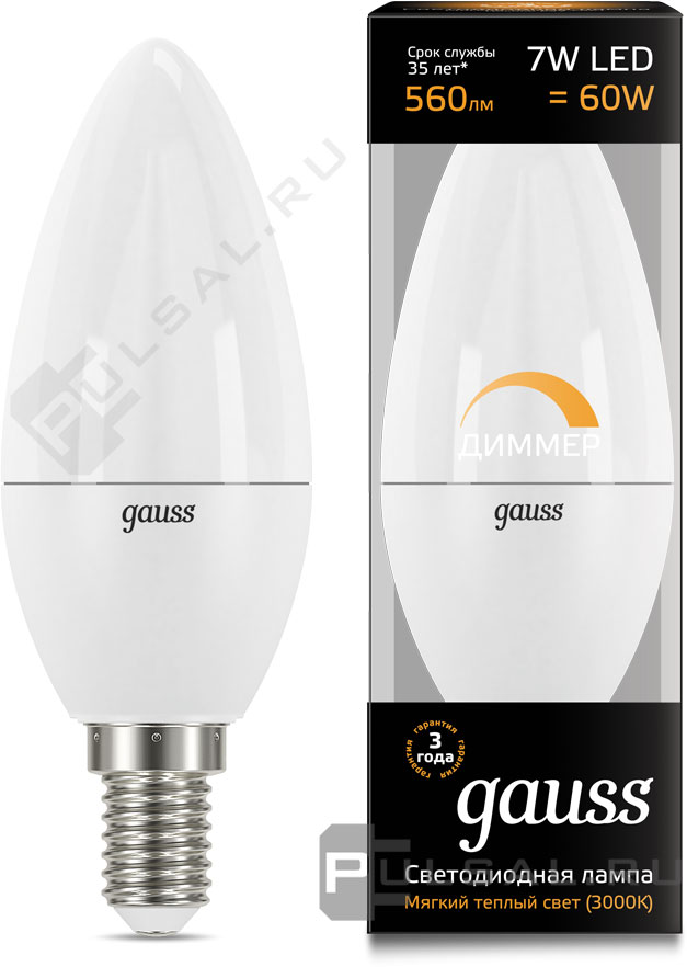 Black, цоколь - E14, мощность - 7Вт, световой поток - 560Лм, цветовая температура - 3000К, диммируется, 105101107-D, Gauss