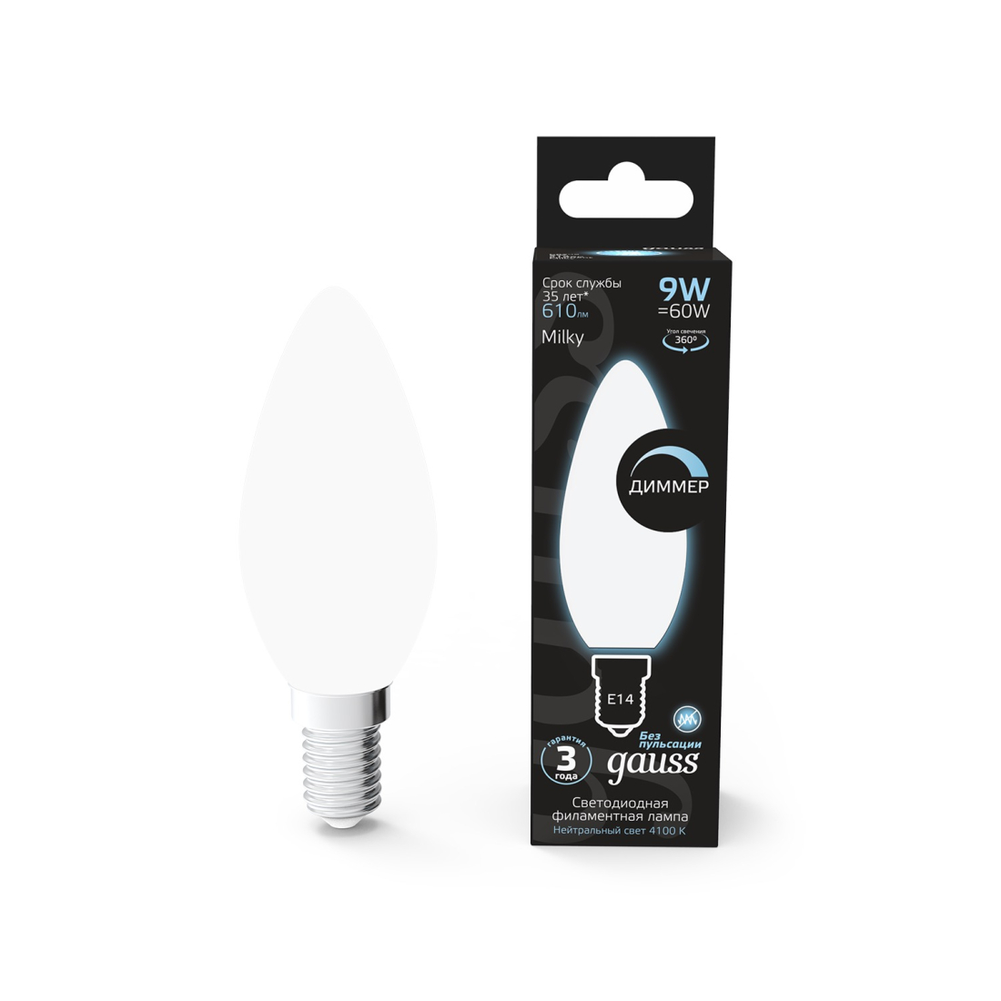 Black, цоколь - E14, мощность - 7Вт, световой поток - 590Лм, цветовая температура - 4100К, диммируется, 103101207-D, Gauss