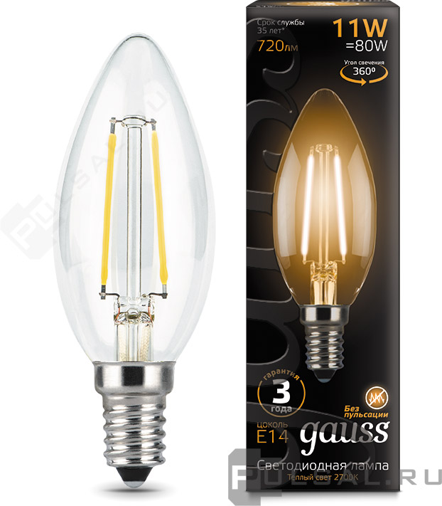 Лампа филаментная Black, цоколь - E14, мощность - 11Вт, световой поток - 720Лм, цветовая температура - 2700К, не диммируется, 103801111, Gauss