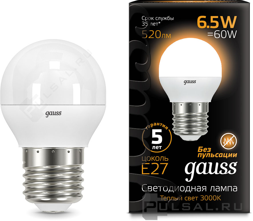 Лампа светодиодная Black, цоколь - E27, мощность - 6.5Вт, световой поток - 520Лм, цветовая температура - 3000К, не диммируется, 105102107, Gauss