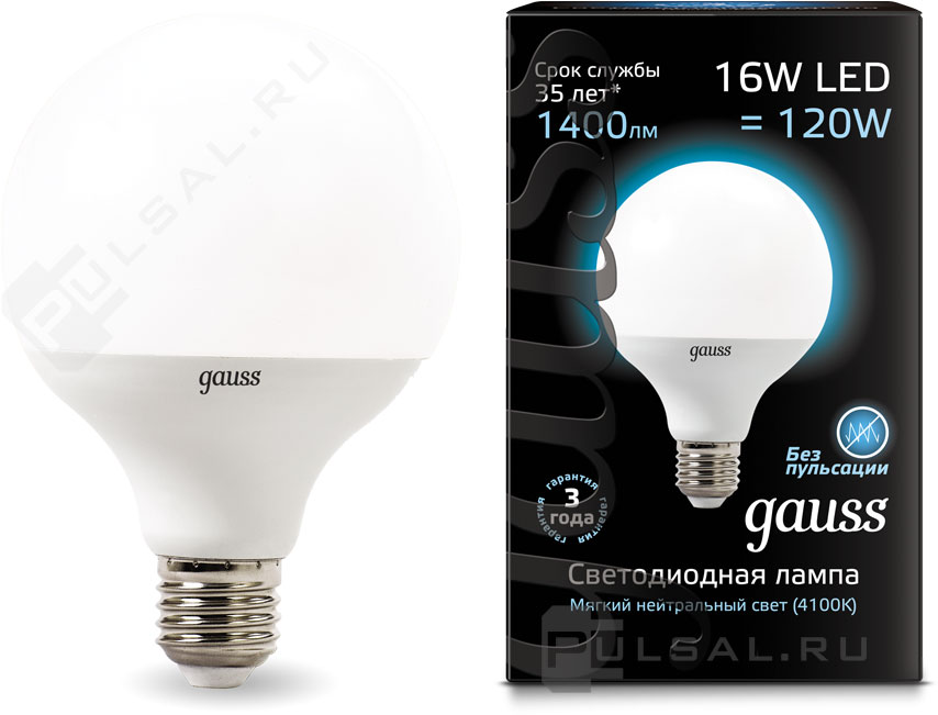 Black, цоколь - E27, мощность - 10Вт, световой поток - 920Лм, цветовая температура - 4100К, не диммируется, 102502210, Gauss