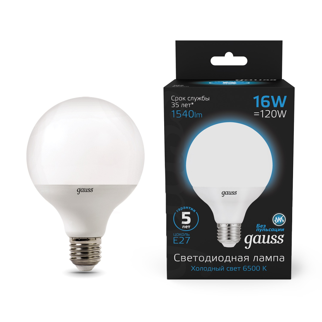 Лампа светодиодная Black, цоколь - E27, мощность - 16Вт, световой поток - 1400Лм, цветовая температура - 6500К, не диммируется, 105102316, Gauss