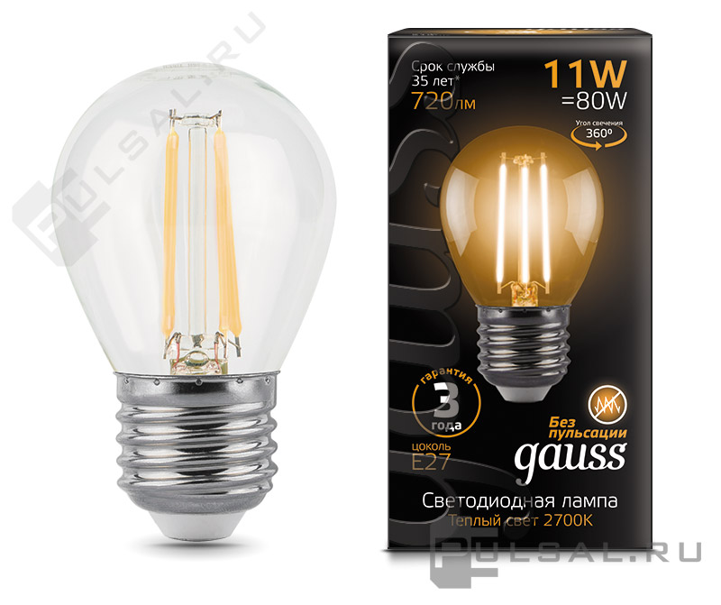 Black, цоколь - E27, мощность - 6.5Вт, световой поток - 520Лм, цветовая температура - 2700Кцветовая температура - 3000К, не диммируется, 103102107, Gauss