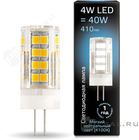 Elementary, цоколь - G4, мощность - 4Вт, световой поток - 400Лм, цветовая температура - 4100К, не диммируется, 10724, Gauss