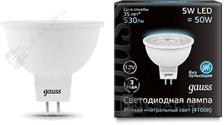 Elementary, цоколь - GU5.3, мощность - 7Вт, световой поток - 550Лм, цветовая температура - 4100К, не диммируется, 13527, Gauss