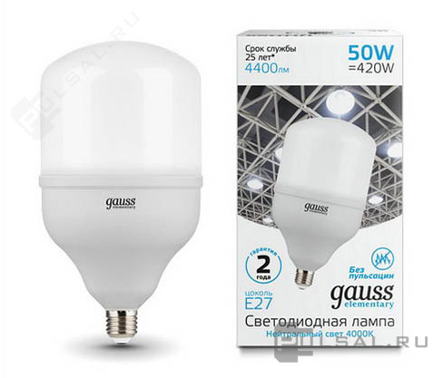 Elementary, цоколь - E27, мощность - 60Вт, световой поток - 5400Лм, цветовая температура - 4000К, не диммируется, 63226, Gauss