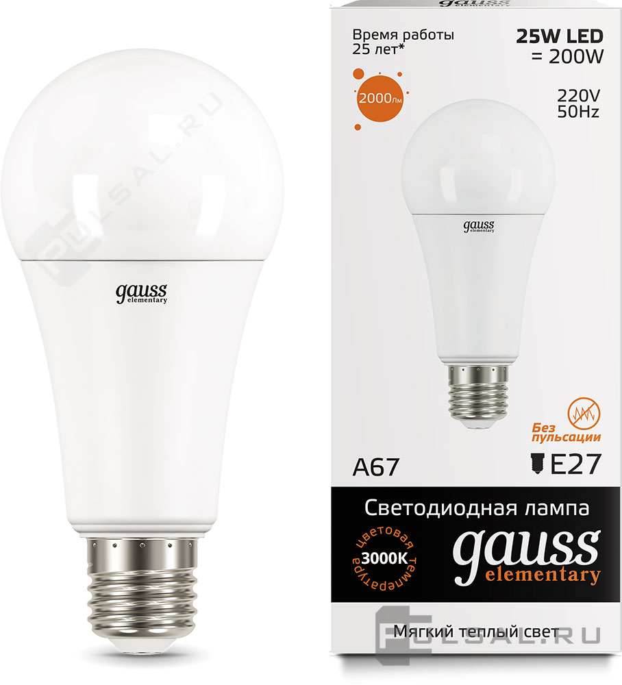 Elementary, цоколь - E27, мощность - 12Вт, световой поток - 1130Лм, цветовая температура - 3000К, не диммируется, 23212, Gauss