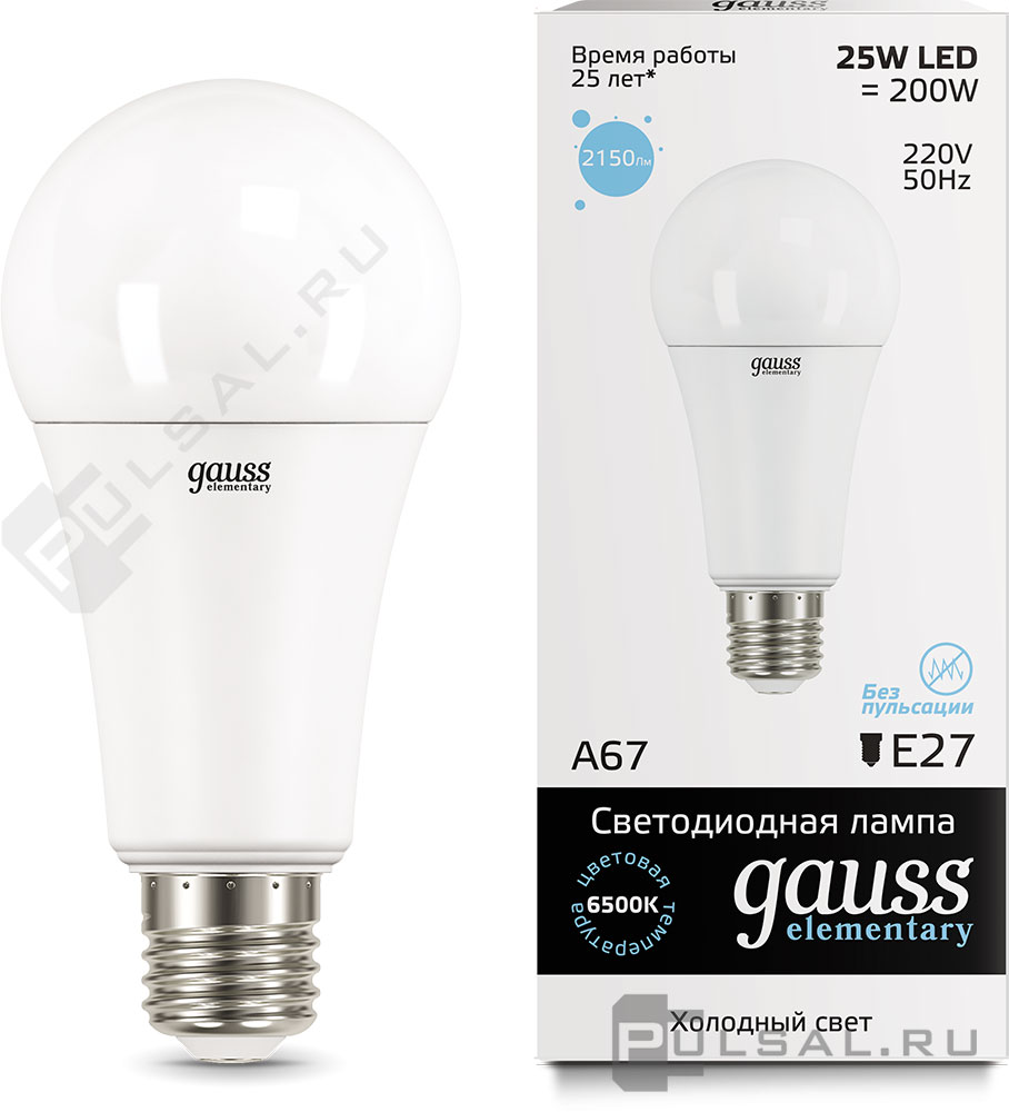 Лампа светодиодная Elementary, цоколь - E27, мощность - 30Вт, световой поток - 2390Лм, цветовая температура - 6500К, не диммируется, 73239, Gauss