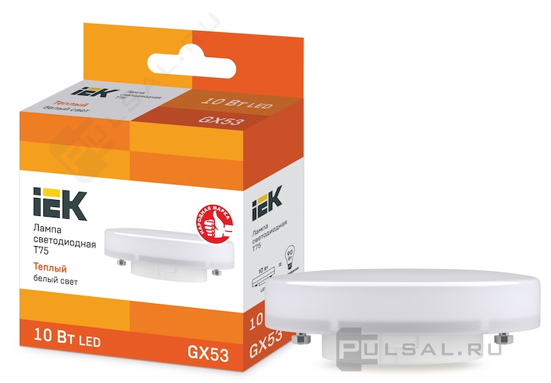 Лампа светодиодная Лампы IEK, цоколь - GX53, мощность - 10Вт, световой поток - 903Лм, цветовая температура - 3000К, не диммируется, LLE-T80-10-230-30-GX53, IEK