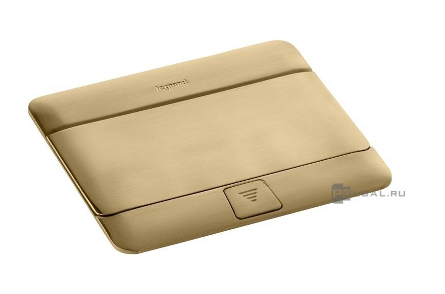 Выдвижной розеточный блок Mosaic, DLP IP 40, напольная, для столов и мебели, 4 модуля, цвет - латунь