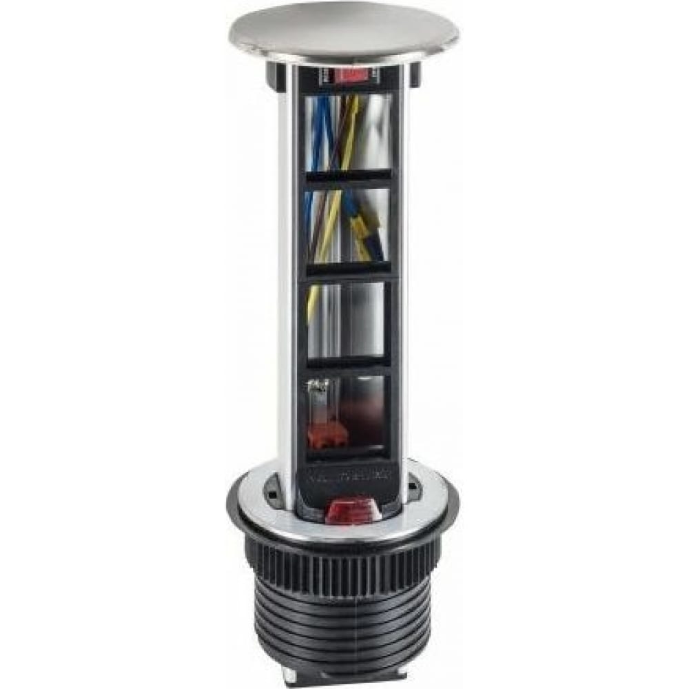 Настольный встраиваемый розеточный блок Static Лючки DDSB, для столов и мебели, 4 поста, 8 модулей, цвет - серебро