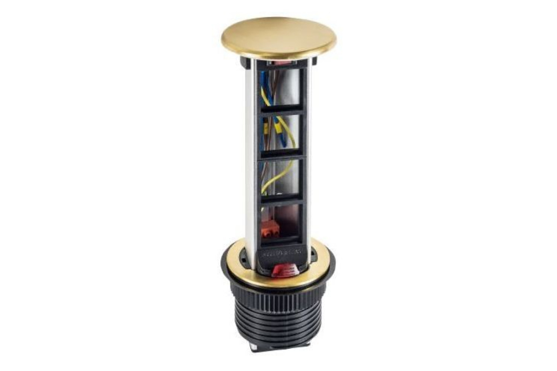 Телеблок на 4 механизма с выключателем нагрузки для столов и мебели, 4 поста, 8 модулей, цвет - латунь