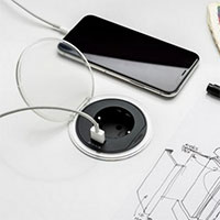 • встраиваемые в стол розетки, USB-зарядки, безпроводные зарядки