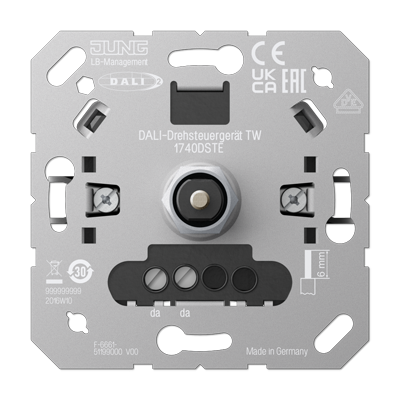Электронный потенциометр DALI без блока питания шины, TW (tunable white - с регулировкой цвет.темп.) A VIVA, A creation, A 550, A flow, AS 500, CD 500, LS 990, LS plus, LS 990 Les Couleurs Le Corbusier, LS ZERO, LS-design, SL 500, ECO profi и ECO profi Standart, ECO profi design (ECO Profi Deco), поворотно-нажимной, с возможностью управления с 2-х мест, протокол DALI