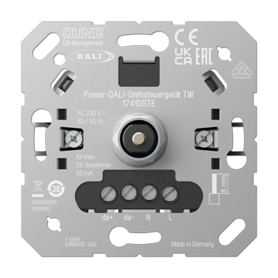 Электронный потенциометр DALI с блоком питания шины, TW (tunable white - с регулировкой цвет.темп.) A VIVA, A creation, A 550, A flow, AS 500, CD 500, LS 990, LS plus, LS 990 Les Couleurs Le Corbusier, LS ZERO, LS-design, SL 500, ECO profi и ECO profi Standart, ECO profi design (ECO Profi Deco), поворотно-нажимной, с возможностью управления с 2-х мест, протокол DALI