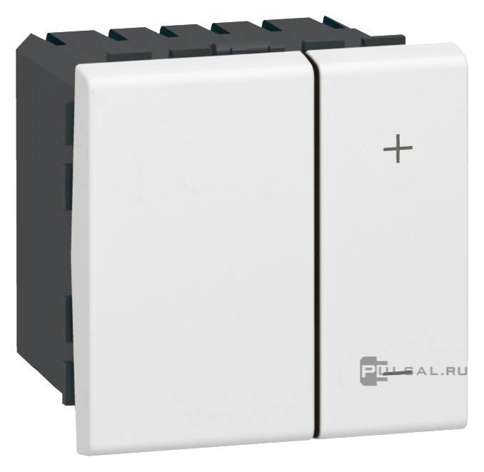 Etika, клавишный, с возможностью управления с 2-х мест, лампы накаливания и галогенные 220В (R), лампы с индукционным (обмоточным) трансформ.(L), лампы с электронным (емкостным) трансформ.(C), диммируемые лампы LED 220В (LEDi тип L), диммируемые лампы LED 220В (LEDi тип C), цвет - белый