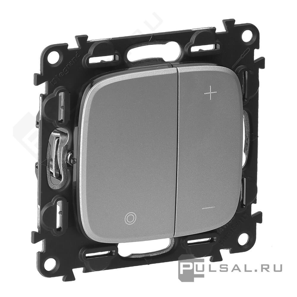 Механизм светорегулятора (диммера) 5-400 Вт/ВА, для LED 5-75 ВА Valena Allure, клавишный, с возможностью управления с 2-х мест, лампы накаливания и галогенные 220В (R), лампы с индукционным (обмоточным) трансформ.(L), лампы с электронным (емкостным) трансформ.(C), диммируемые лампы LED 220В (LEDi тип L), диммируемые лампы LED 220В (LEDi тип C), цвет - алюминий