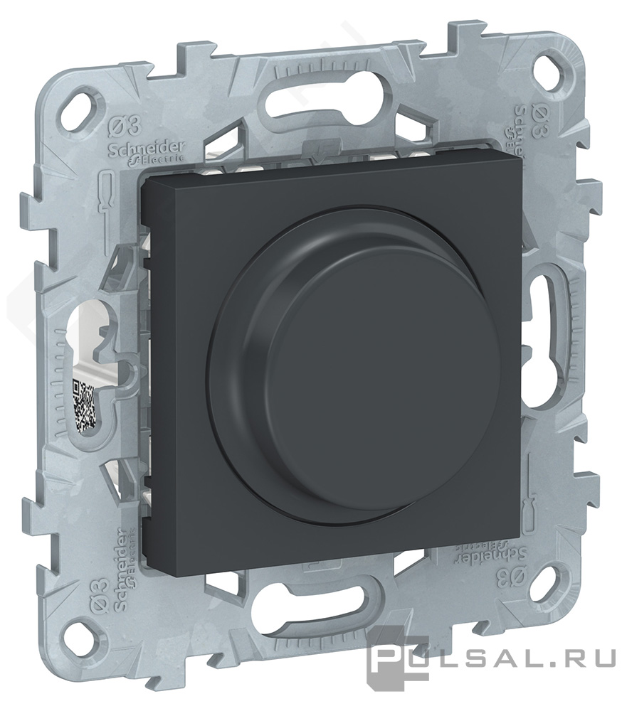 Терморегулятор 10А, НО-контакт, 230В Unica New Pure, Unica New Studio, поворотный, датчик t° пола (внешний), без таймера, цвет - антрацит