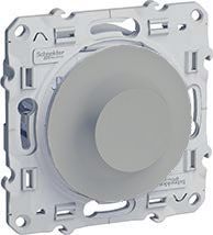 Светорегулятор (диммер) 4-400 Вт/ВА, для LED 4-200 ВА Odace, поворотно-нажимной, с возможностью управления с 2-х мест, лампы накаливания и галогенные 220В (R), лампы с индукционным (обмоточным) трансформ.(L), лампы с электронным (емкостным) трансформ.(C), диммируемые лампы LED 220В (LEDi тип L), диммируемые лампы LED 220В (LEDi тип C), цвет - алюминий