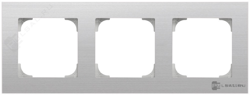 Рамка SKY, 4 поста, цвет - нержавеющая сталь, металл
