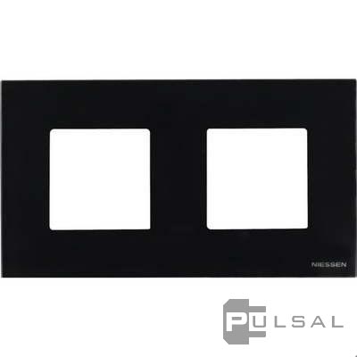 Рамка (итальянский стандарт) Zenit, 2 модуля, цвет - черное стекло, стекло