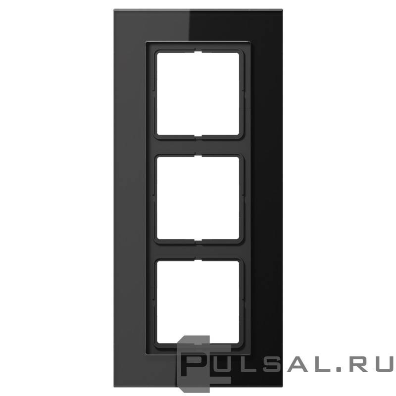 Рамка LS plus, 5 постов, цвет - черный, стекло