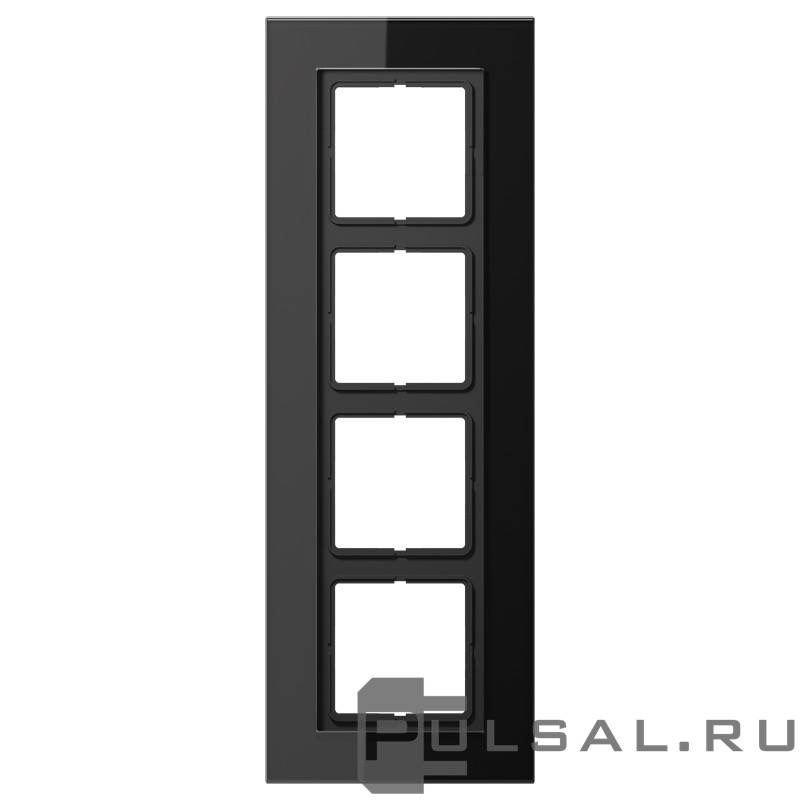 Рамка LS plus, 4 поста, цвет - черный, стекло