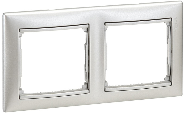 Valena, со шторками, с заземлением, двойная, винтовые клеммы, цвет - алюминий