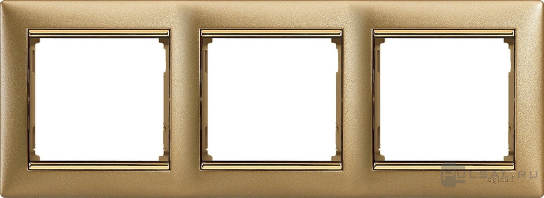 Рамка Valena, 3 поста, цвет - золото матовое / золотой штрих, пластмасса