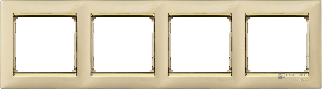 Рамка Valena, 4 поста, цвет - слоновая кость / золотой штрих, пластмасса
