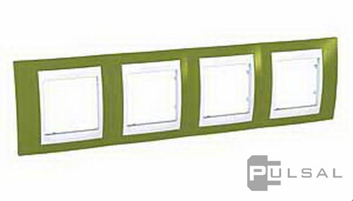 Рамка Unica Хамелеон, 4 поста, цвет - фисташковый, белый, пластмасса