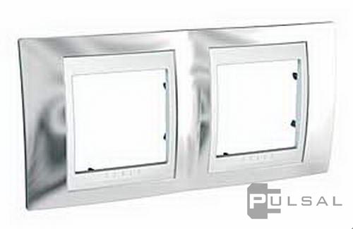 Рамка Unica Хамелеон, 2 поста, цвет - хром, белый, металл