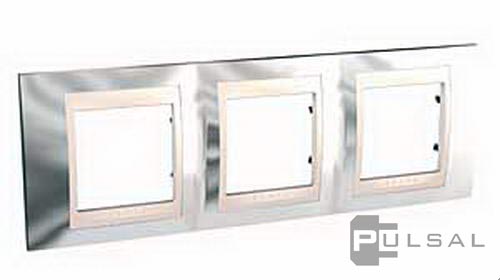 Рамка Unica Хамелеон, 3 поста, цвет - хром, белый, металл