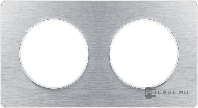 Рамка Odace, 2 поста, цвет - алюминий полированный, алюминий, металл