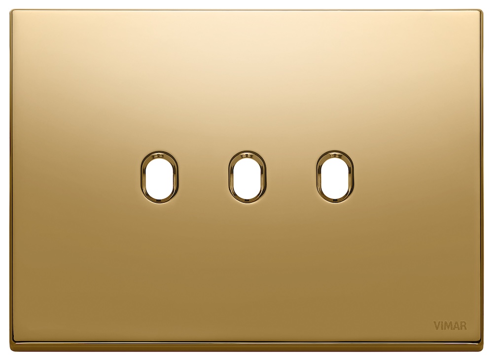 Рамка-накладка для тумблерного выключателя, на 2 механизма Eikon EXE Vintage, 3 модуля, цвет - золото матовое, металл