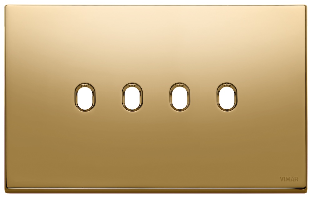 Рамка-накладка для тумблерного выключателя, на 4 механизма Eikon EXE Vintage, 4 модуля, цвет - золото матовое, металл