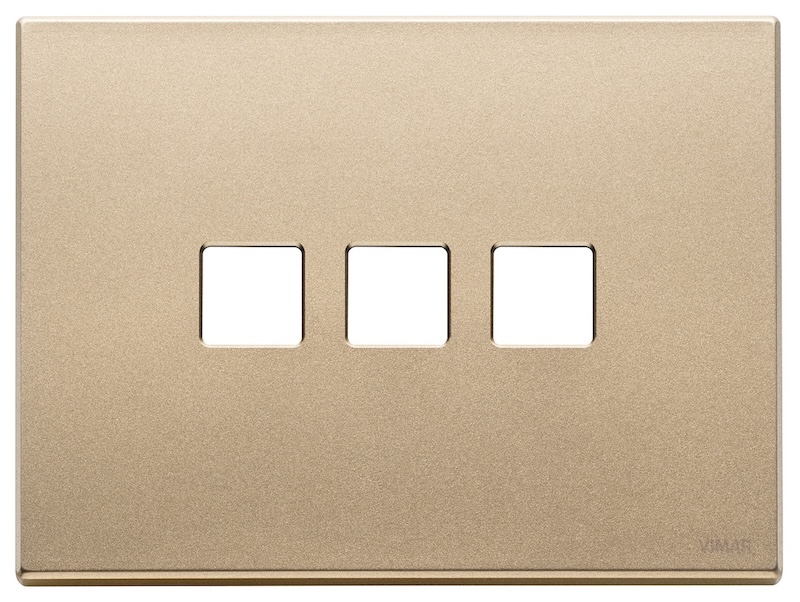 Рамка-накладка для выключателя Flat, на 1 механизм Eikon EXE Flat & Tondo, 3 модуля, цвет - золото матовое, металл