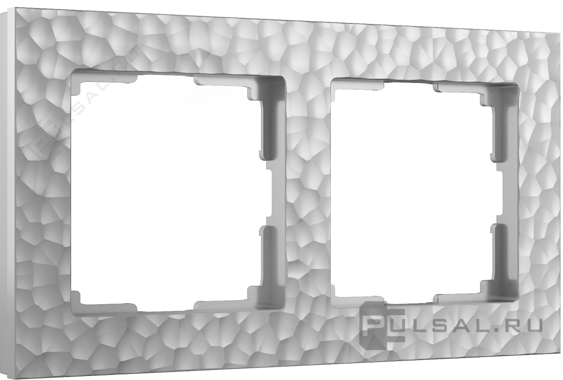 Рамка для двойной розетки Hammer, 2 поста без перегородки, цвет - серебряный, пластмасса